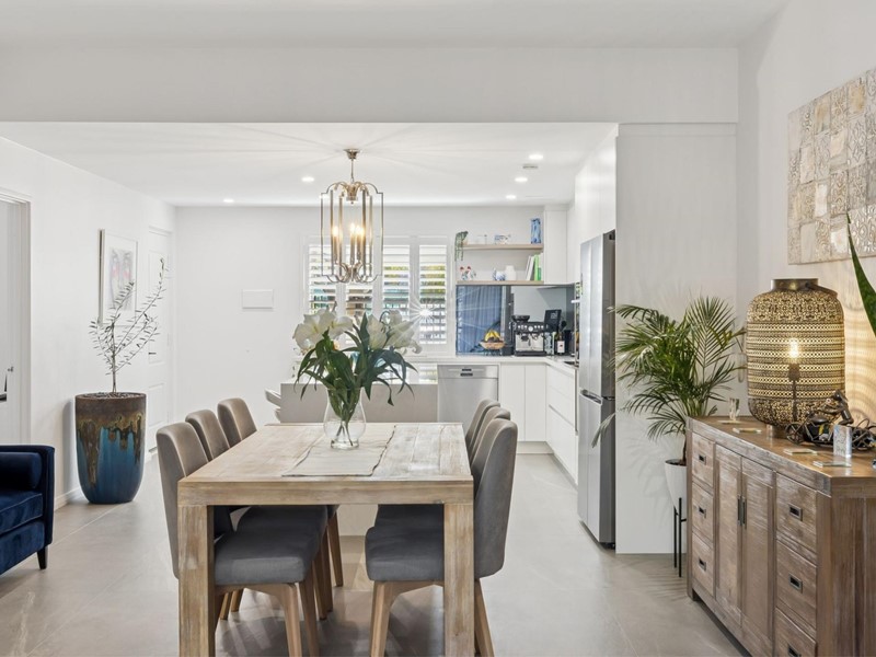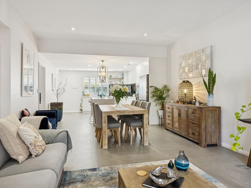 - High ceilings to the open plan kitchen/dining/living zone which flows seamlessly to the alfresco area