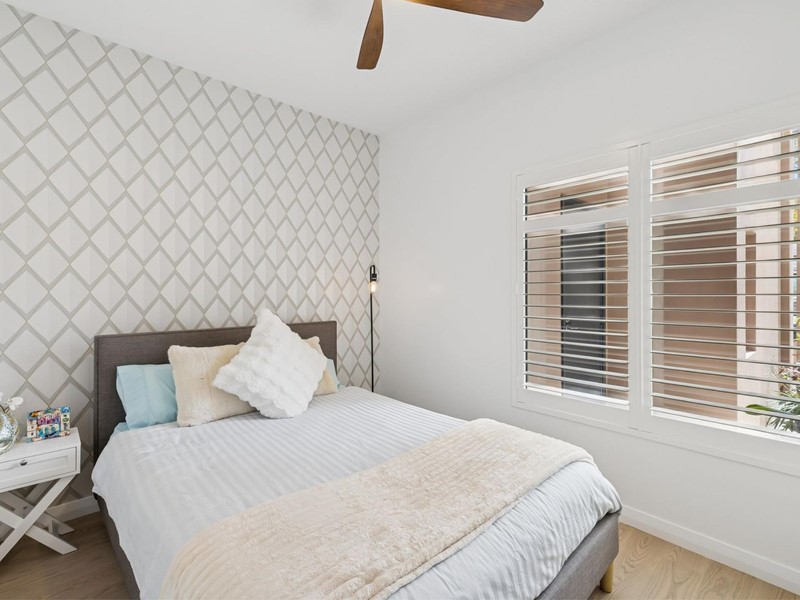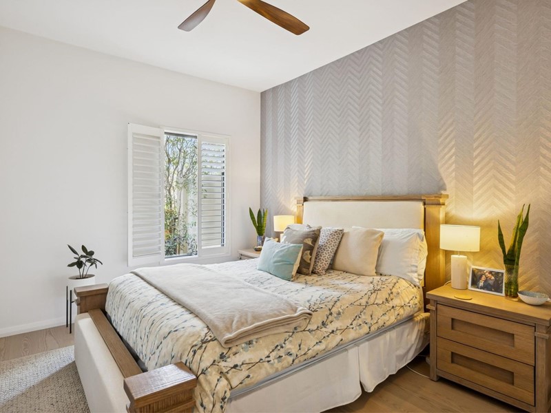 - Bed 2 also has floor-to-ceiling robes, French wallpaper feature wall & a b/in desk
