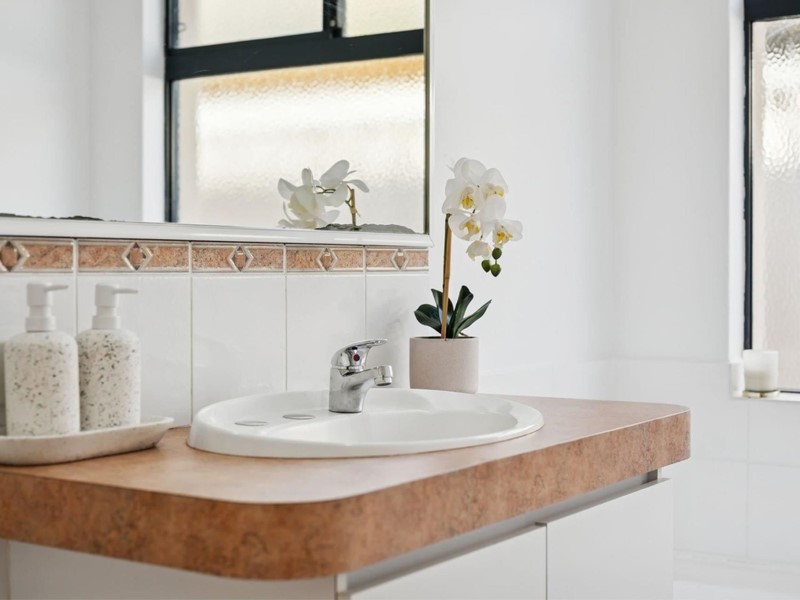 - Spacious, easy-clean kitchen features a breakfast bar, electric oven, gas cooktop & tiled splashback