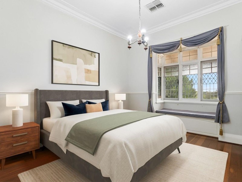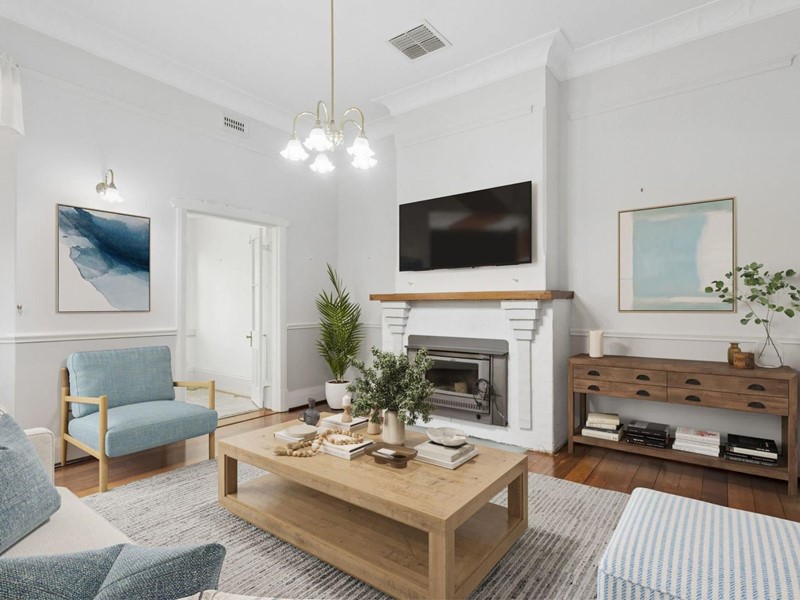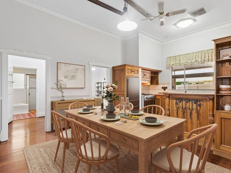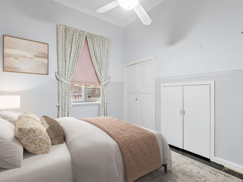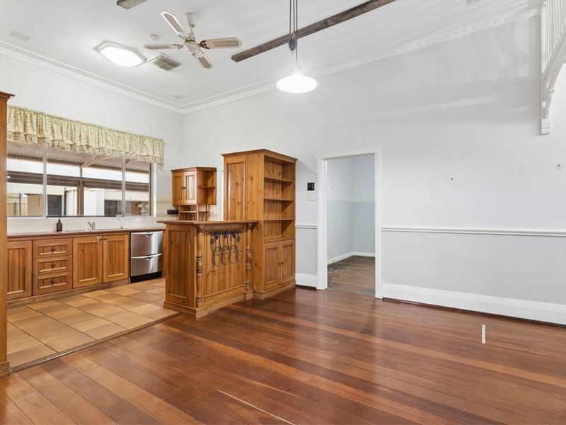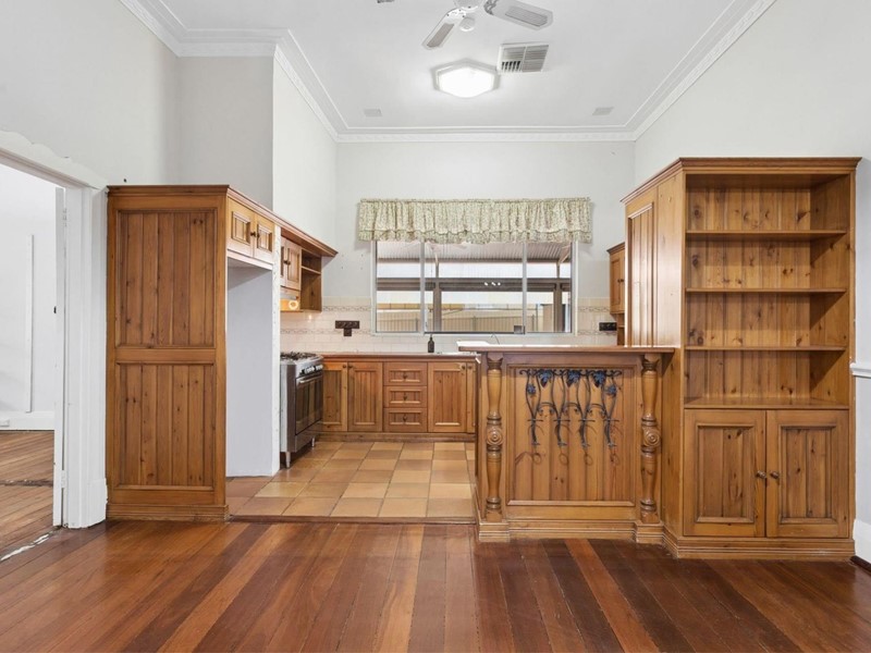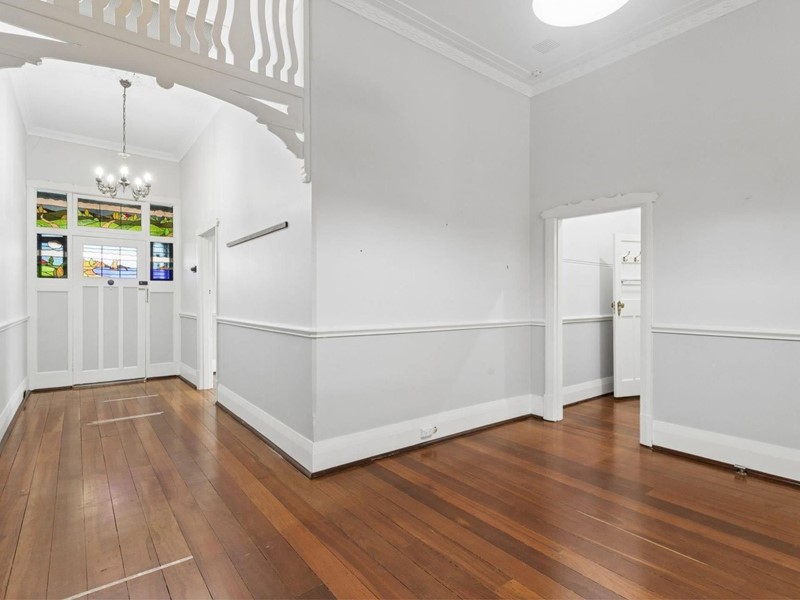 - Ultra-high ceilings; decorative cornices; picture rails; jarrah floors; wide skirting boards; wide hallway