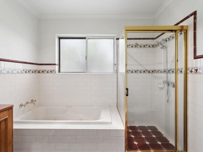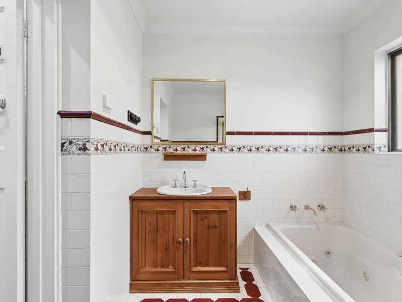 - Federation style family bathroom features spa bath, shower & an alcove with dbl linen press